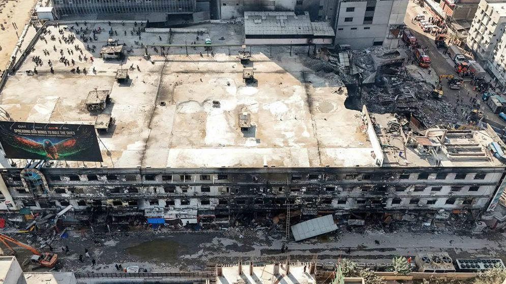 প্রাথমিকভাবে ধারণা করা হচ্ছে, এখনো ভবনের ভেতরে ধ্বংসাবশেষের নিচে প্রায় অর্ধশত মরদেহ চাপা পড়ে থাকতে পারে। গত শনিবার (১৭ জানুয়ারি) রাতে করাচির জিন্নাহ রোডে অবস্থিত গুল প্লাজা শপিং মলে আগুনের সূত্রপাত হয়। অল্প সময়ের মধ্যেই তা পুরো ভবনে ছড়িয়ে পড়ে এবং ভেতরে থাকা ক্রেতা ও দোকান কর্মীরা আটকা পড়েন।