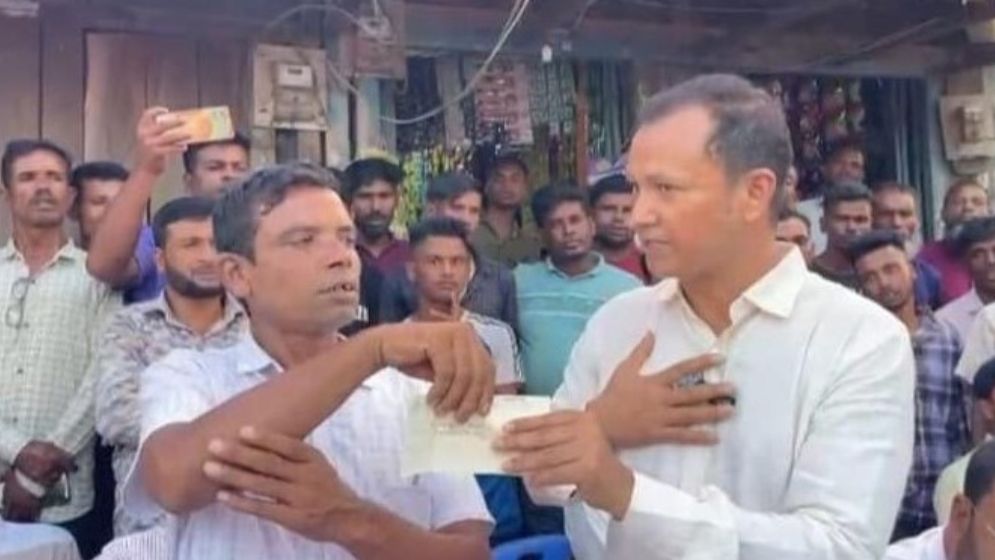 সুনামগঞ্জের বিএনপি নেতা কামরুজ্জামান কামরুল রোববার (২৬ অক্টোবর) তাহিরপুরের এক কর্মী সমাবেশে মঞ্চে দেওয়া ১০ লাখ টাকার একটি চেক ফেরত